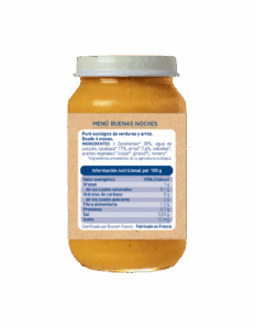El tarrito Babybio de Noche Zanahoria, Calabaza y Arroz está formulado especialmente para la cena de bebés a partir de 6 meses. Elaborado con ingredientes ecológicos, su combinación de verduras dulces y arroz ofrece una comida suave, digestiva y saciante, perfecta para favorecer un buen descanso. Sin sal añadida, sin azúcares ni conservantes, su textura ligera lo hace fácil de tomar y agradable para el bebé.