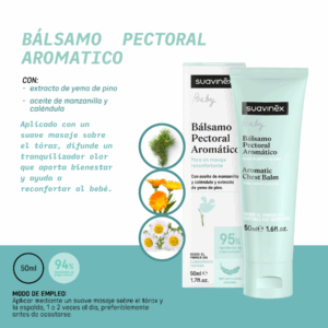 ¡Aporta bienestar a tu bebé con el bálsamo pectoral aromático Suavinex de 50 ml! Su suave masaje en el tórax difunde un olor tranquilizador que reconforta y mejora el sueño. Con extracto de yema de pino, aceite de manzanilla y caléndula, hidrata y suaviza su piel después del baño. Descubre más en nuestra gama de…