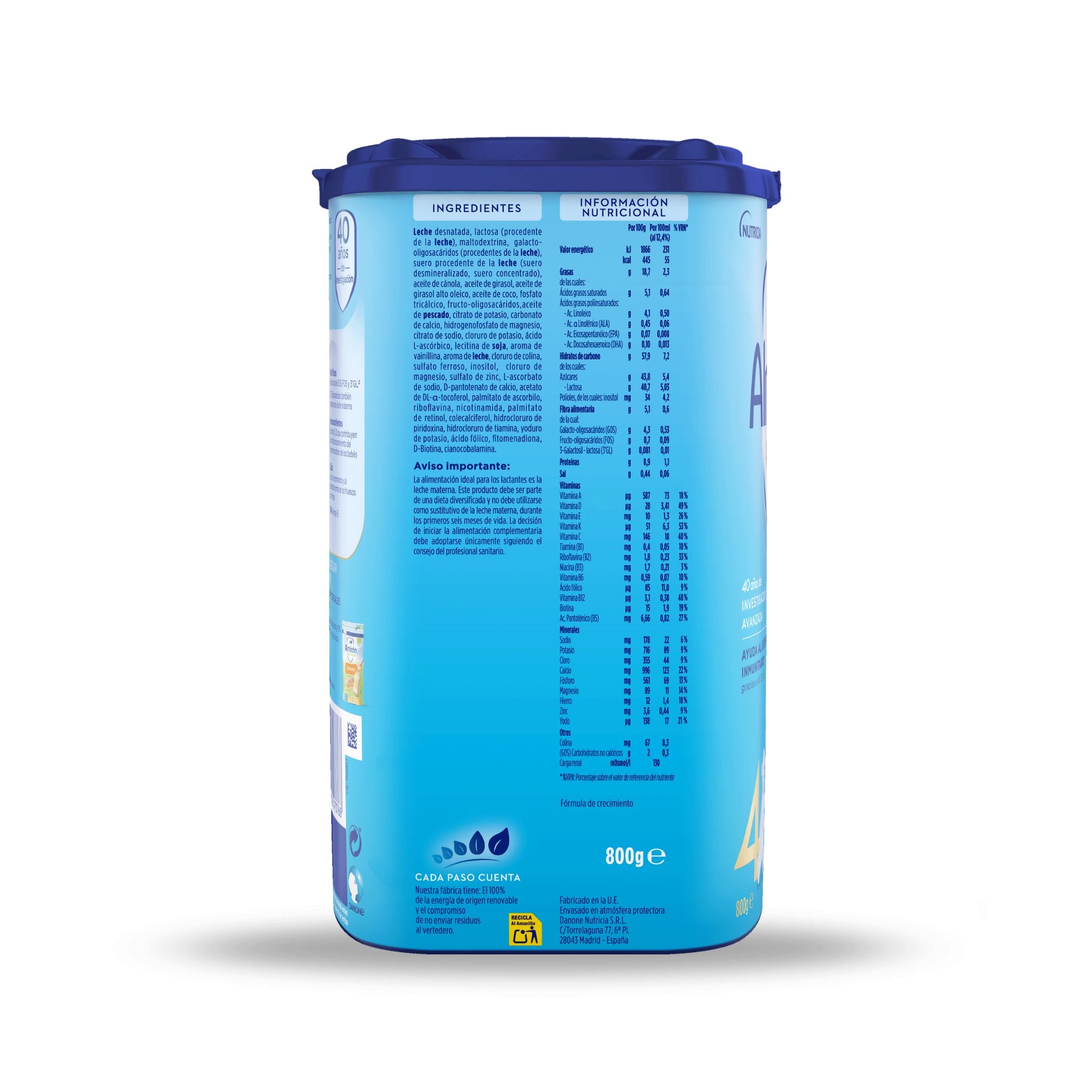 Descubre Almirón Advance+ 4 , la leche de crecimiento perfecta para bebés a partir de 2 años. Con su fórmula única de NutriFibras, HMO y vitaminas C y D, contribuye al desarrollo inmunológico y cerebral. Sin aceite de palma, para darle lo mejor a tu bebé.