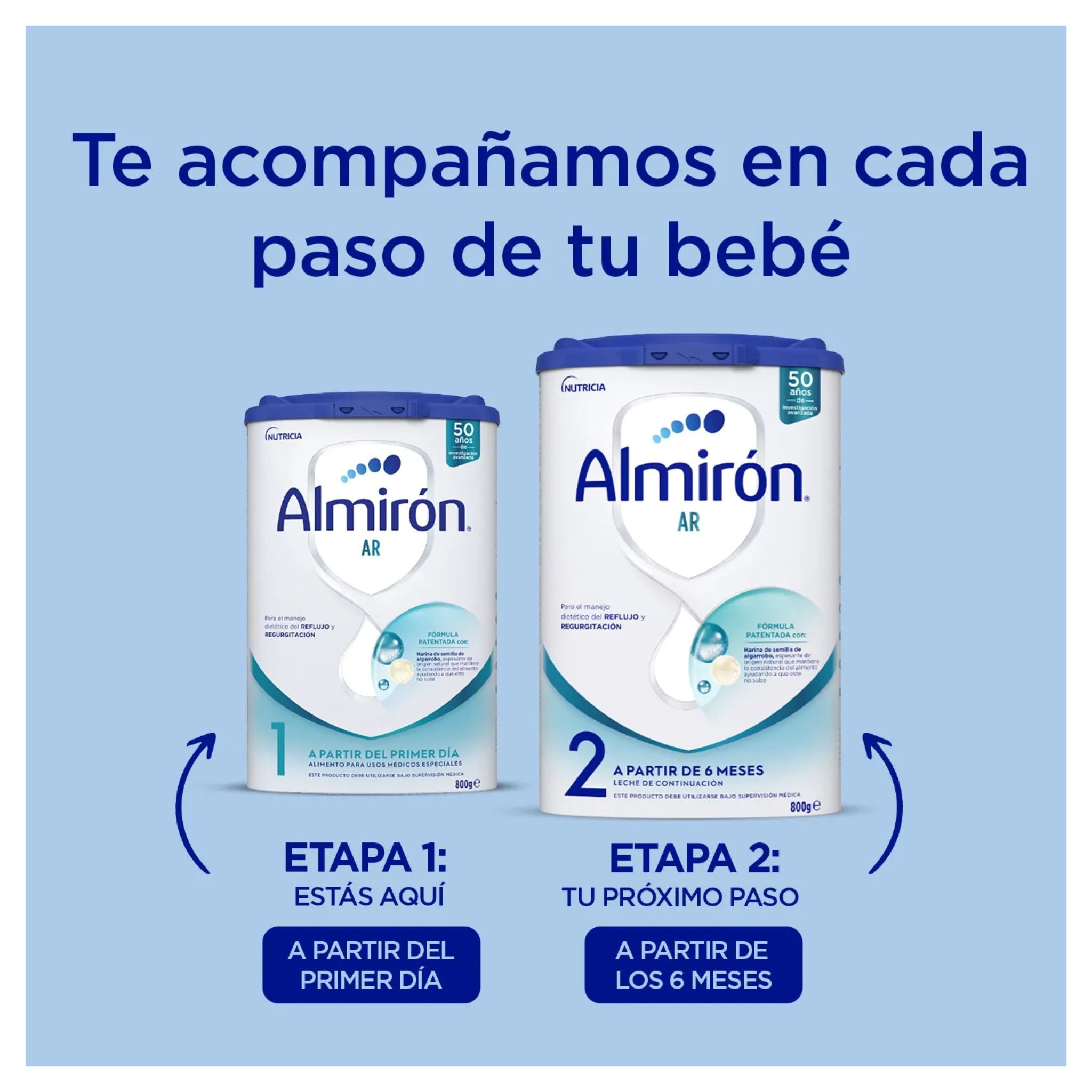 La fórmula Almirón AR 1, diseñada para bebés de 0 a 6 meses, es una leche de inicio desde el primer día. Ayuda a controlar las regurgitaciones en lactantes, siendo un alimento médico de uso especial para un manejo dietético.