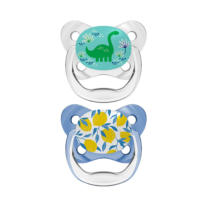 El chupete Dr. Brown’s Prevent Mariposa está diseñado con una base en forma de mariposa que ofrece mayor comodidad y espacio para la nariz del bebé. Su tetina de silicona ortodóntica con sistema de canal de aire reduce la presión en el paladar, ayudando a prevenir problemas bucodentales. Fabricado con materiales seguros y libre de BPA, es ideal para el uso diario.
