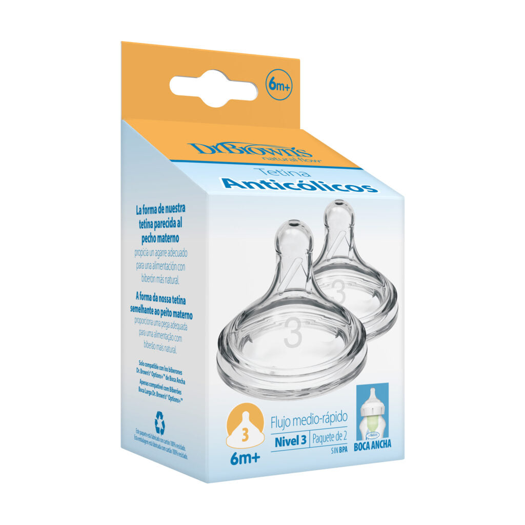 Compatibles con los biberones anticólicos Dr. Brown’s Options+ de boca ancha.
