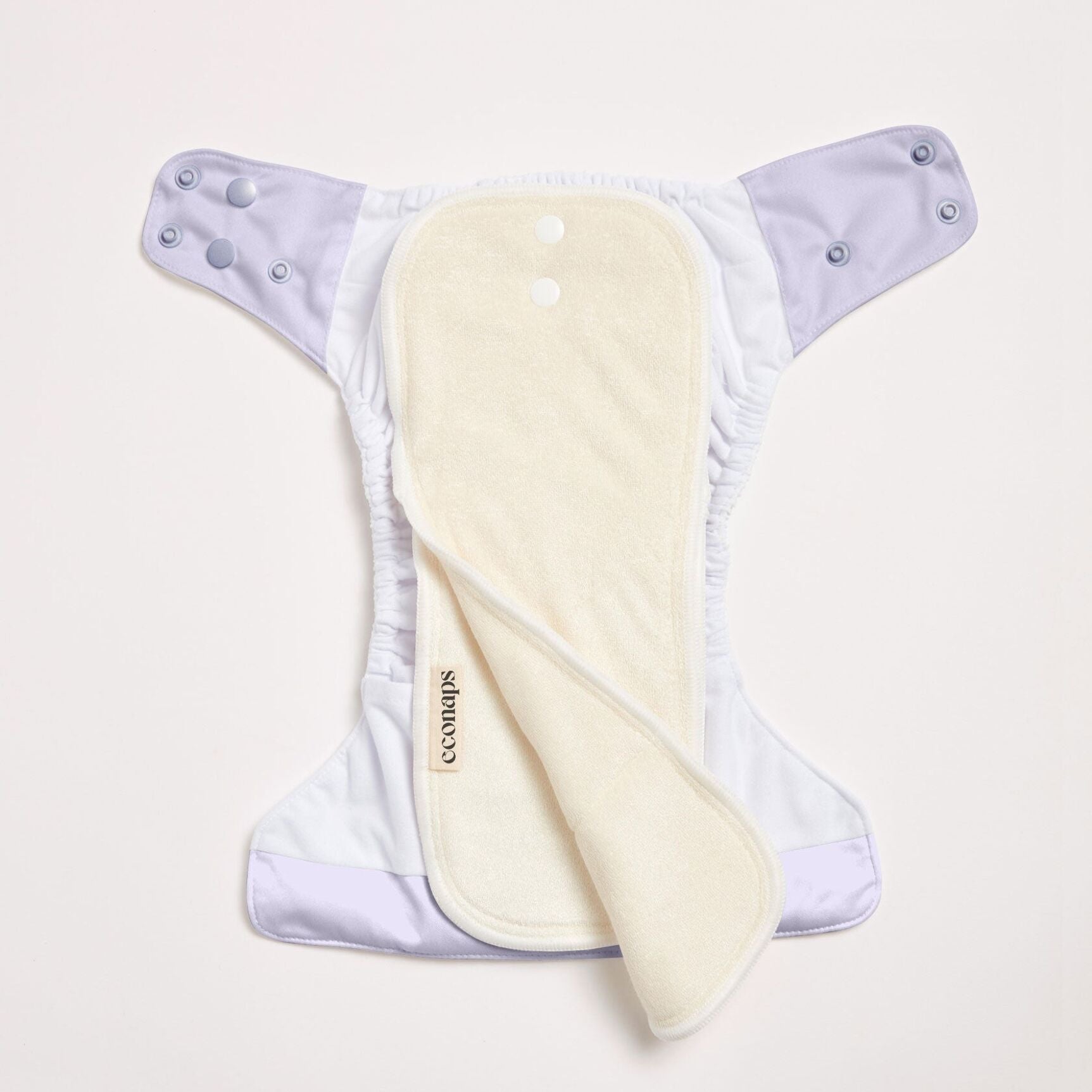 El Econaps pañal de tela color lavanda es un pañal reutilizable y ecológico que combina funcionalidad, estilo y sostenibilidad. Con un elegante tono lavanda, está diseñado para acompañar a tu bebé desde el nacimiento hasta la etapa de niño pequeño, adaptándose a su crecimiento y necesidades.