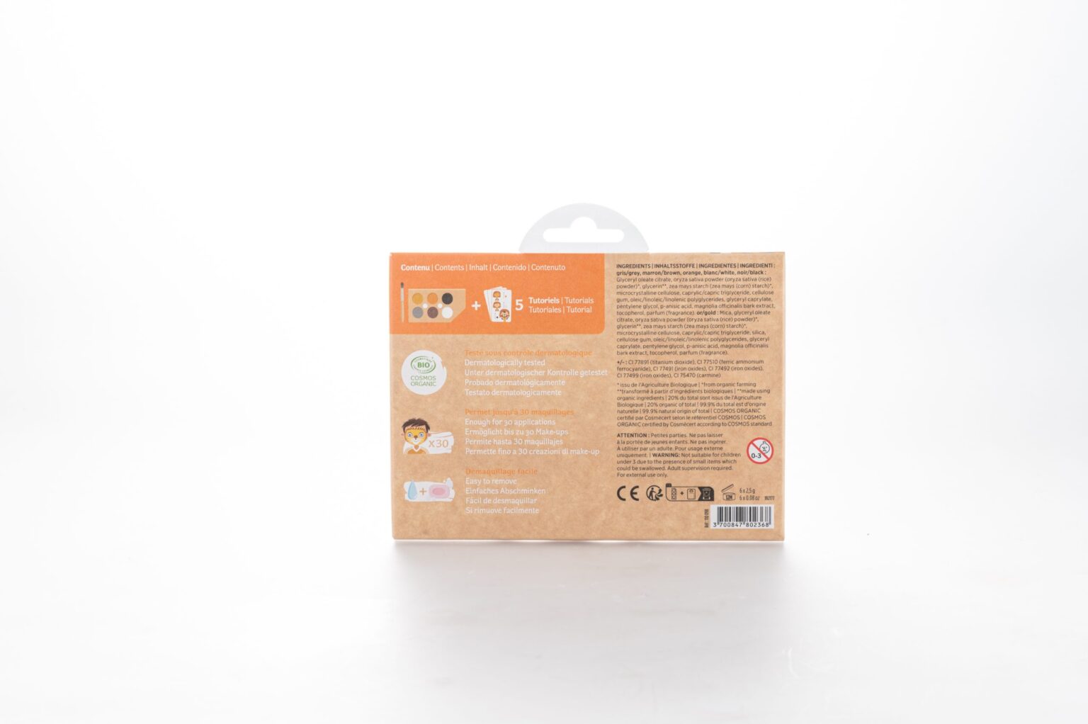 El kit de maquillaje infantil “6 Maquillajes del Mundo Salvaje” incluye seis colores inspirados en la naturaleza y los animales. Perfecto para disfraces de leones, tigres, cebras y más. Con base al agua, es fácil de aplicar y retirar. Su fórmula es hipoalergénica, libre de tóxicos y dermatológicamente testada, ideal para pieles sensibles. Estimula la creatividad de forma segura y divertida.