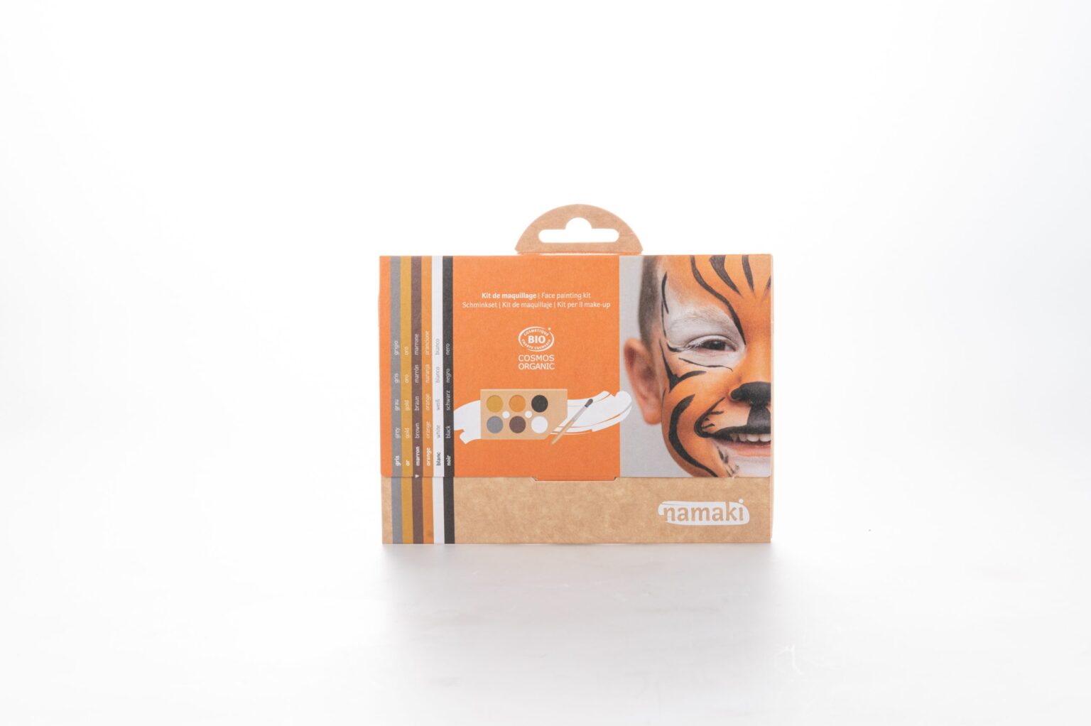 Namaki Kit Maquillaje Mundo Salvaje es un set de maquillaje natural e hipoalergénico, ideal para niños que quieran transformarse en animales salvajes, crear diseños de tigre, jaguar, dinosaurio, camuflaje u otros motivos creativos. Incluye seis colores vibrantes en una paleta fácil de usar, con tutoriales incluidos para inspirar y guiar el diseño, ideal para fiestas, cumpleaños o juegos creativos.