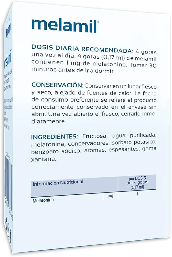Melamil gotas es un complemento alimenticio en gotas formulado con melatonina pura (99 %) destinado a ayudar a conciliar el sueño en bebés, niños y adultos. Está especialmente indicado para situaciones de dificultad para dormir, cambios de rutina o problemas de conciliación del sueño.