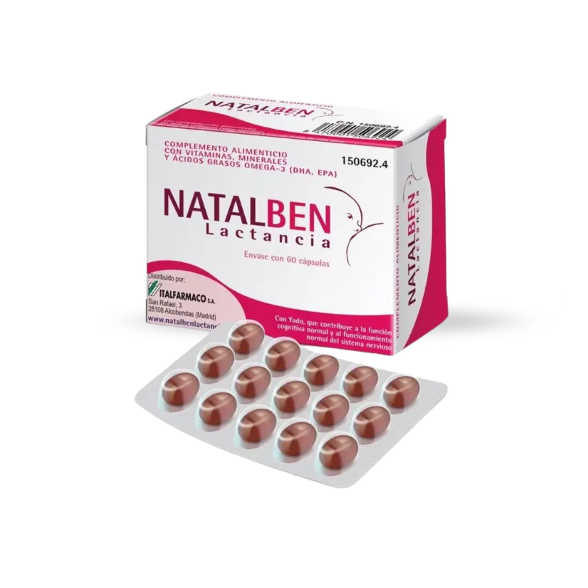 Natalben Lactancia contiene una combinación equilibrada de vitaminas, minerales y ácidos grasos esenciales que apoyan la salud de la madre durante la lactancia. Su fórmula incluye: