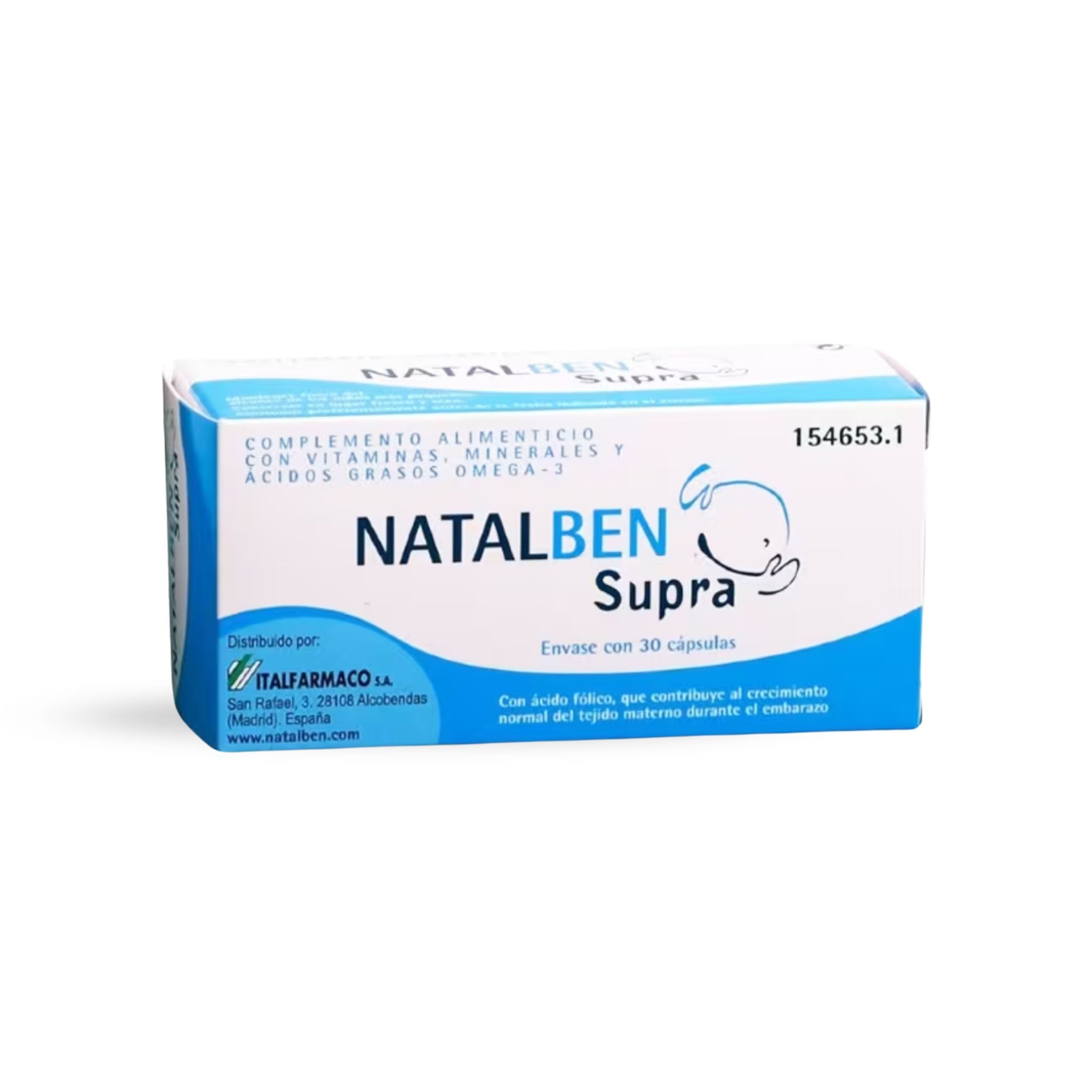 Natalben Supra proporciona una fórmula completa de vitaminas, minerales y ácidos grasos esenciales, cuidadosamente seleccionados para garantizar el bienestar de la madre y el correcto desarrollo del feto durante el embarazo.