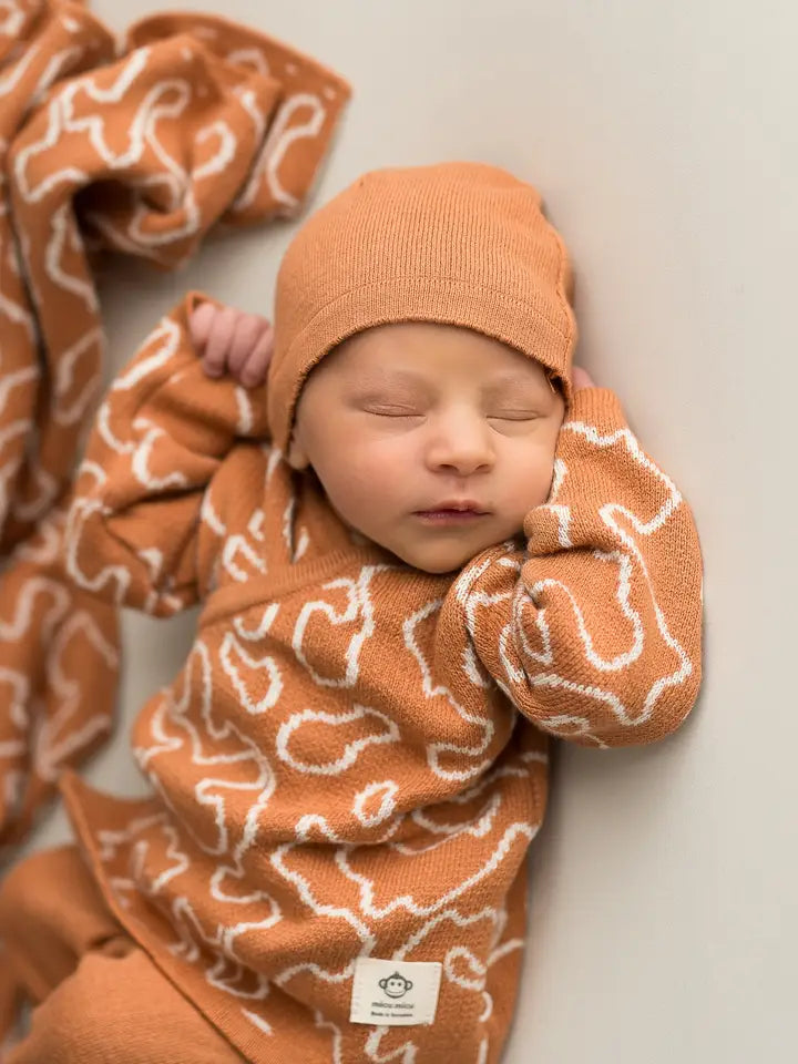 El pack para recién nacido Micu Micu en color rojo ladrillo incluye prendas básicas confeccionadas en algodón orgánico 100%, suaves y respetuosas con la piel del bebé. Su diseño funcional y cómodo lo convierte en la elección perfecta para los primeros días de vida o como regalo de nacimiento. Ideal para primeras puestas, este set combina calidad, estética y sostenibilidad, todo fabricado en Barcelona bajo criterios éticos.