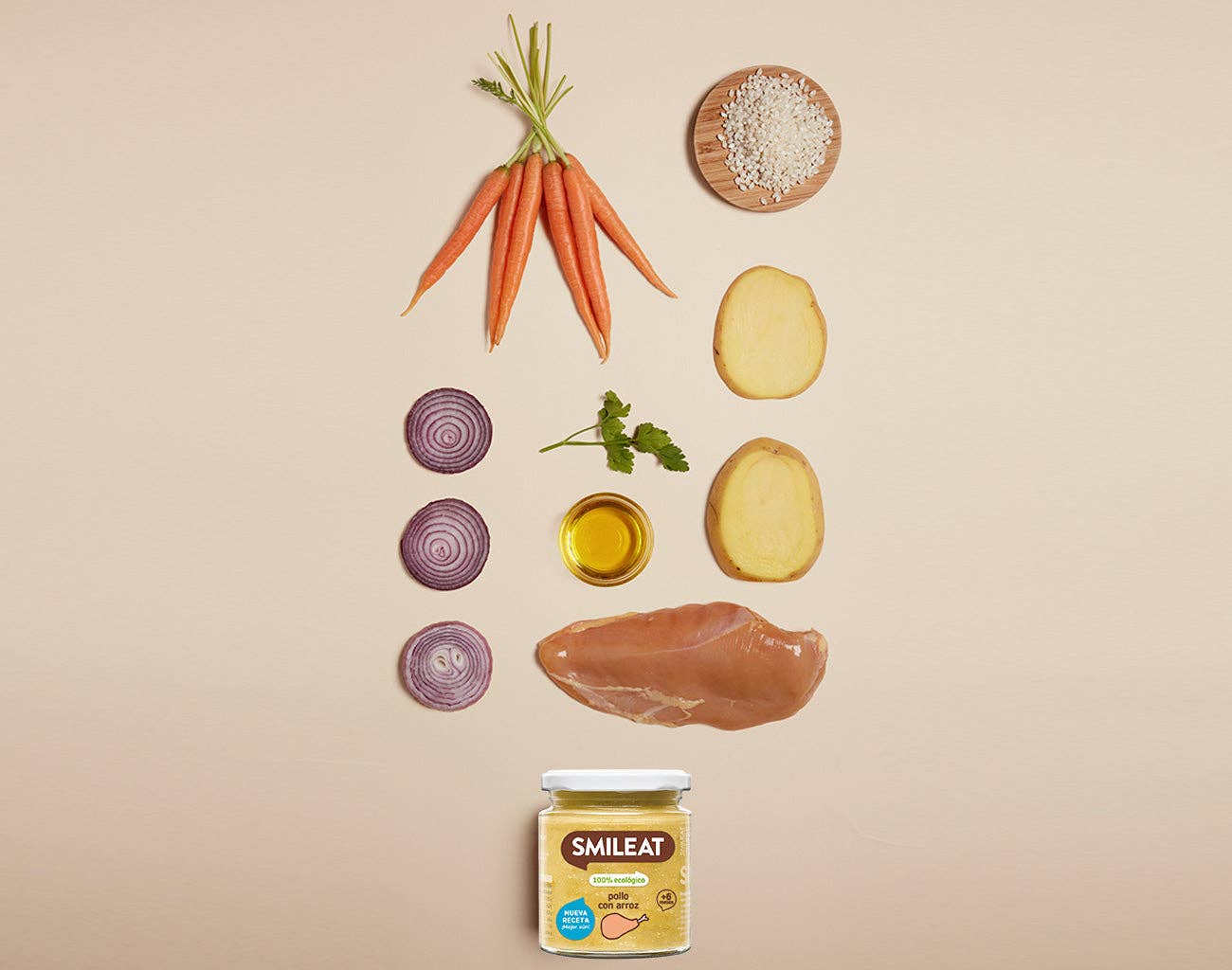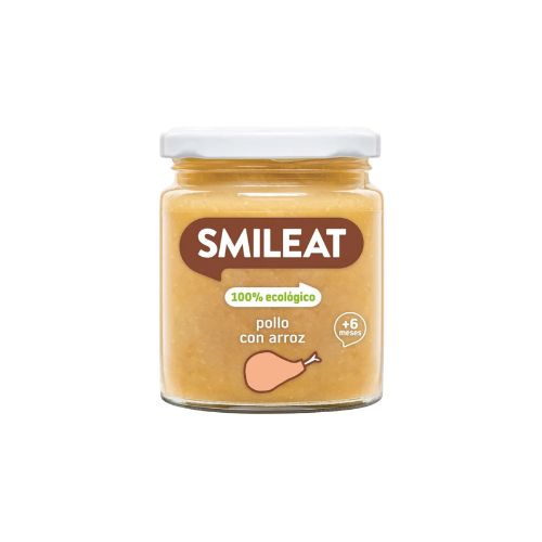 El tarrito Pollo con arroz Ecológico de Smileat está diseñado para bebés a partir de los 6 meses. Contiene una combinación equilibrada de verduras, arroz y carne de pollo, ofreciendo una opción nutritiva, natural y sabrosa para introducir alimentos sólidos en la dieta del bebé.
