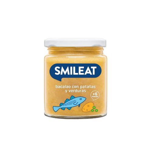 El tarrito de Bacalao con Patatas y Verduras de Smileat es una opción nutritiva y ecológica para bebés a partir de los 6 meses. Combina pescado con vegetales de agricultura ecológica para aportar sabor, textura y nutrientes esenciales en las primeras etapas de la alimentación sólida.