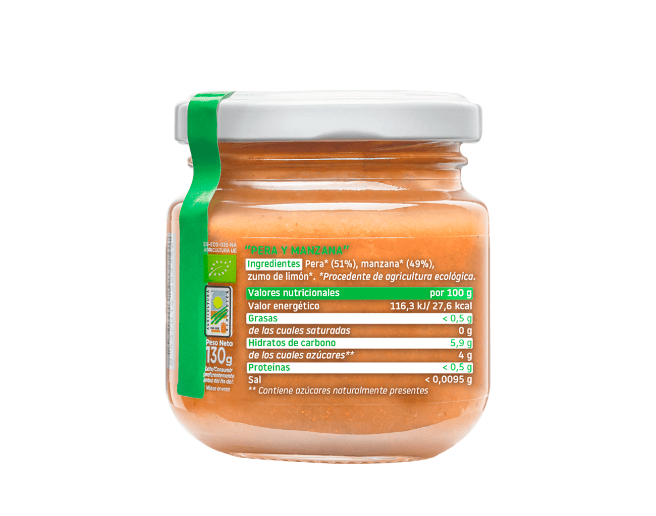 Ingredientes: pera* (51 %), manzana* (49 %) y zumo de limón*.