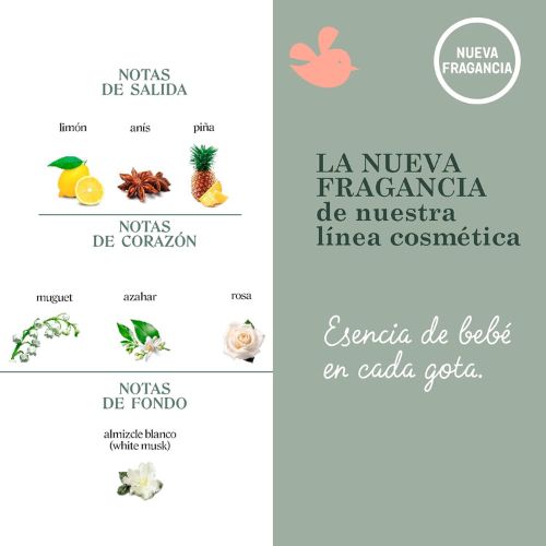 Eau de toilette suave, cálida y alegre, inspirada en el aroma de la gama cosmética Suavinex.