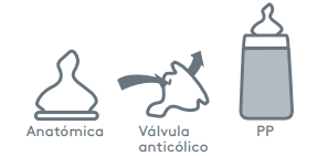 Sistema anticólico integrado, minimiza la entrada de aire y previene molestias al bebé