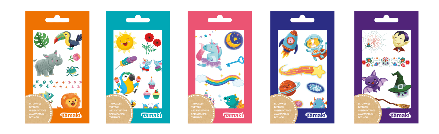 • Tatuajes seguros para la piel infantil, formulados con tintes suaves
