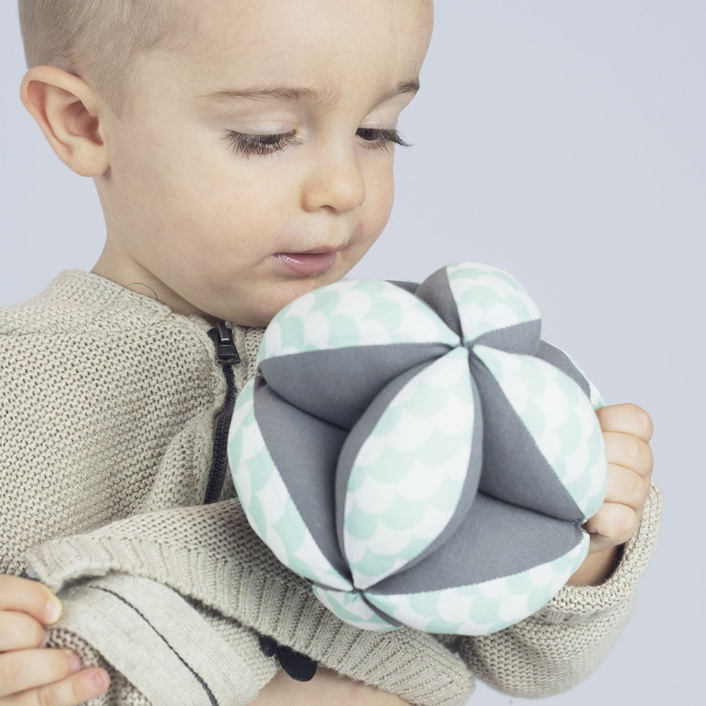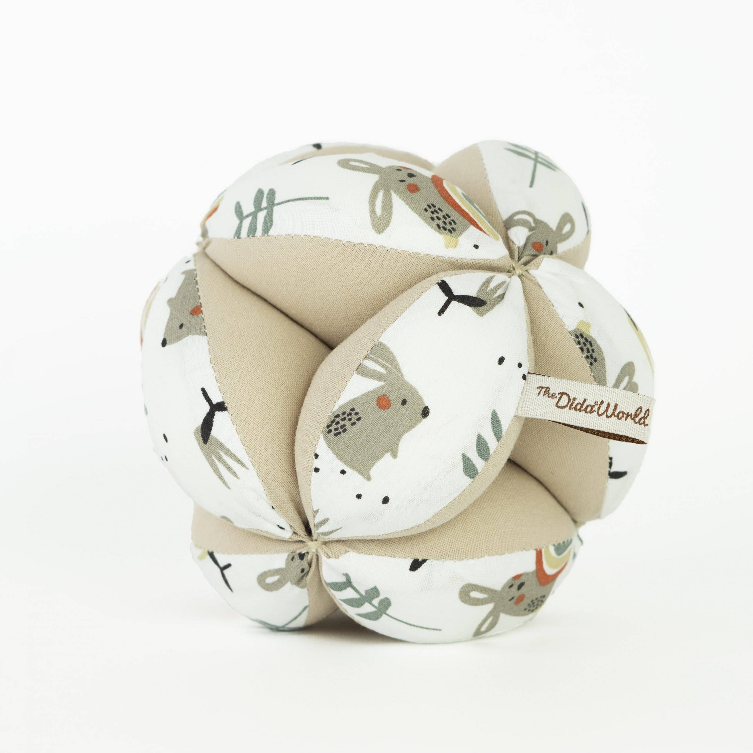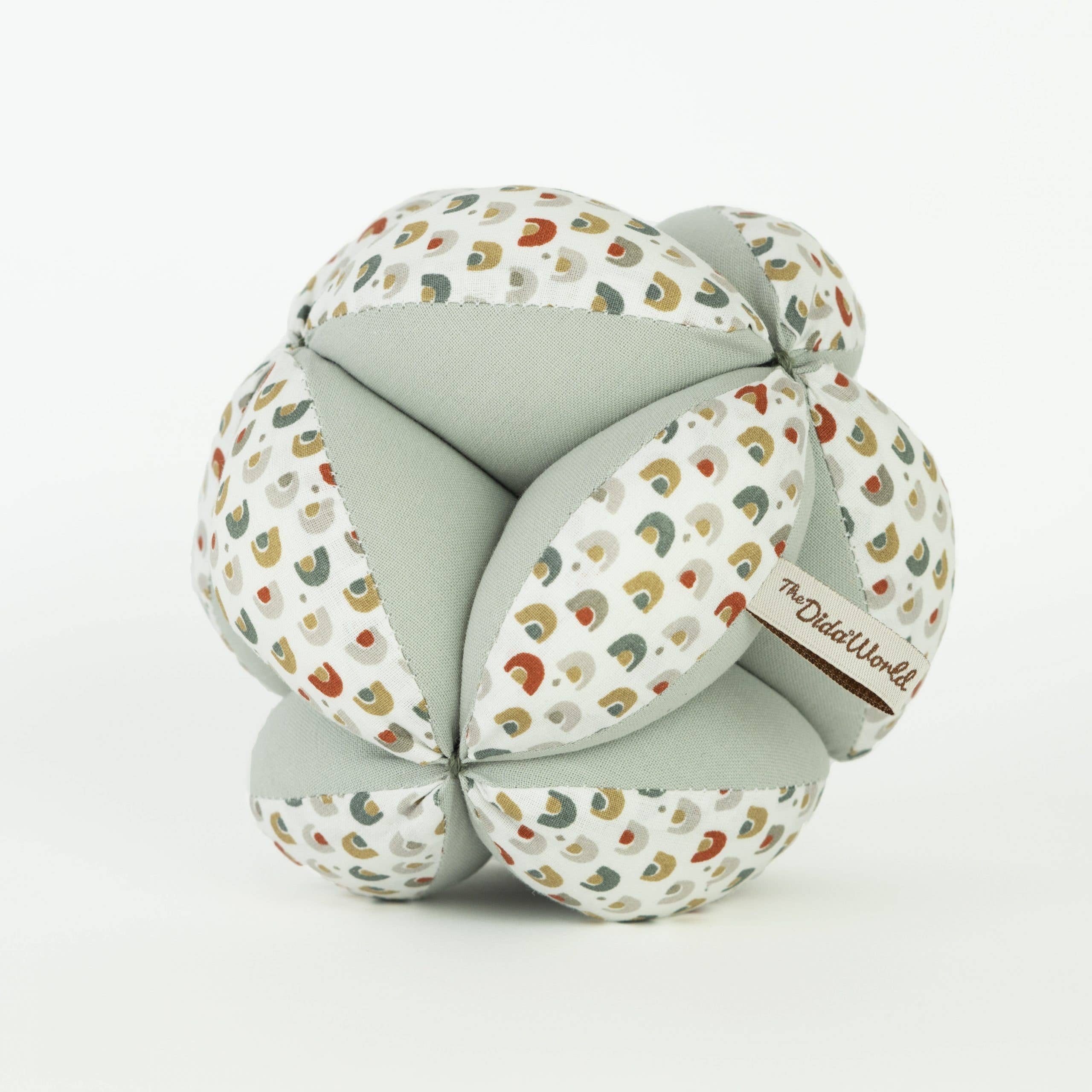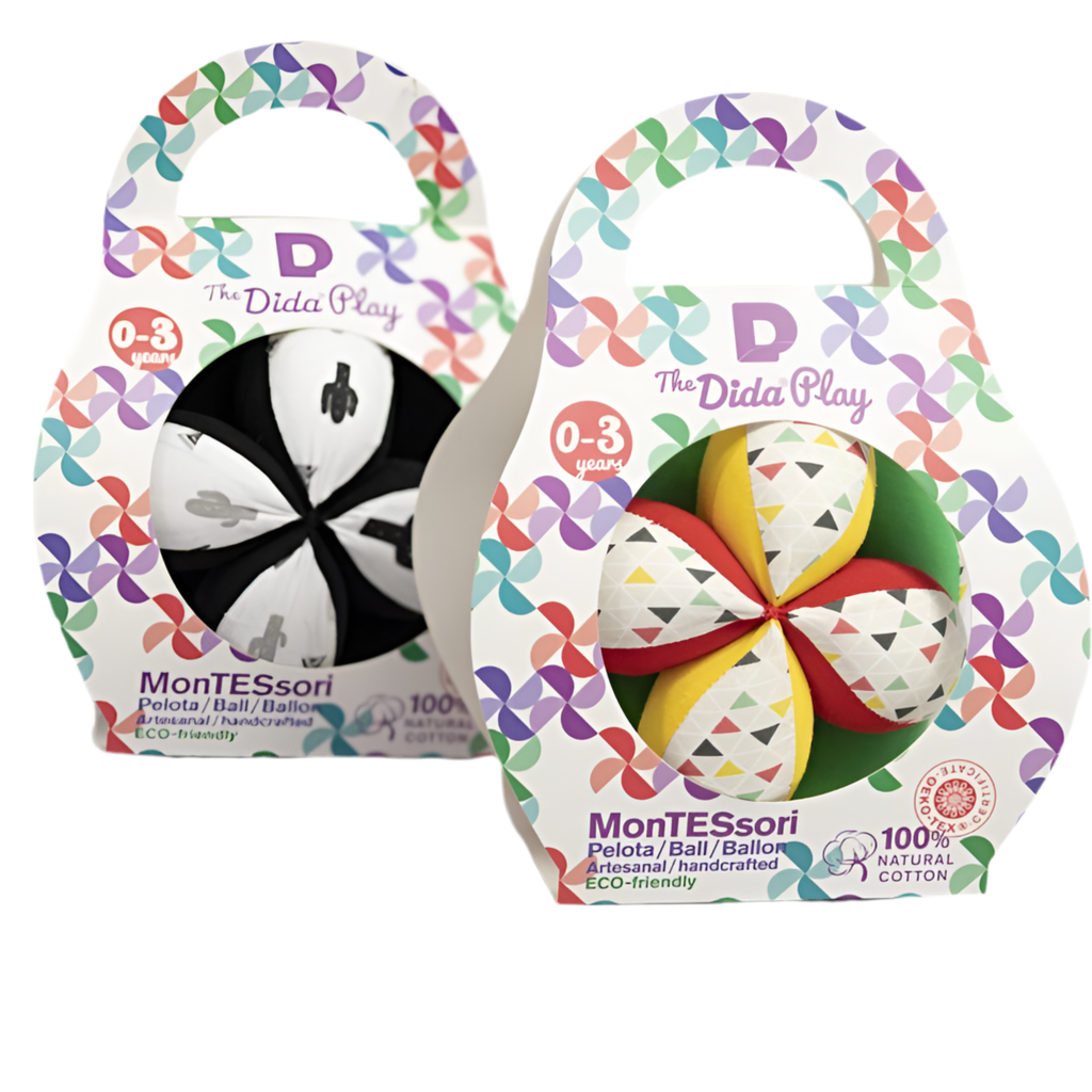 La Pelota Montessori (The Dida) es un juguete artesanal diseñado para bebés desde los 0 meses. Confeccionada con telas de algodón 100 % certificado OEKO‑TEX®, incorpora un cascabel de seguridad en su interior. Se usa primero como móvil para que el bebé lo zarandee y escuche el sonido, más adelante le ayuda a gatear y desarrollar la coordinación al acercarla y moverse tras ella.