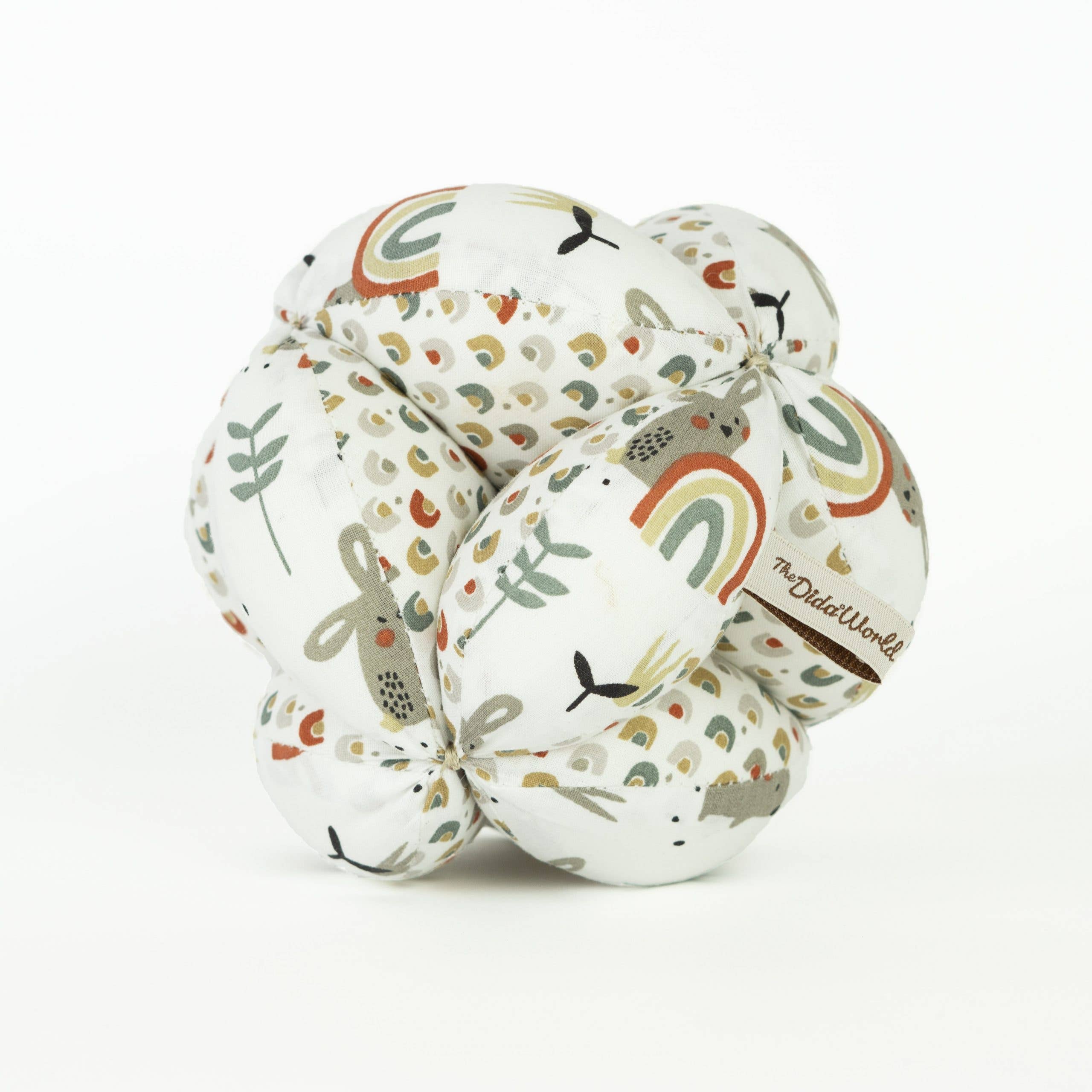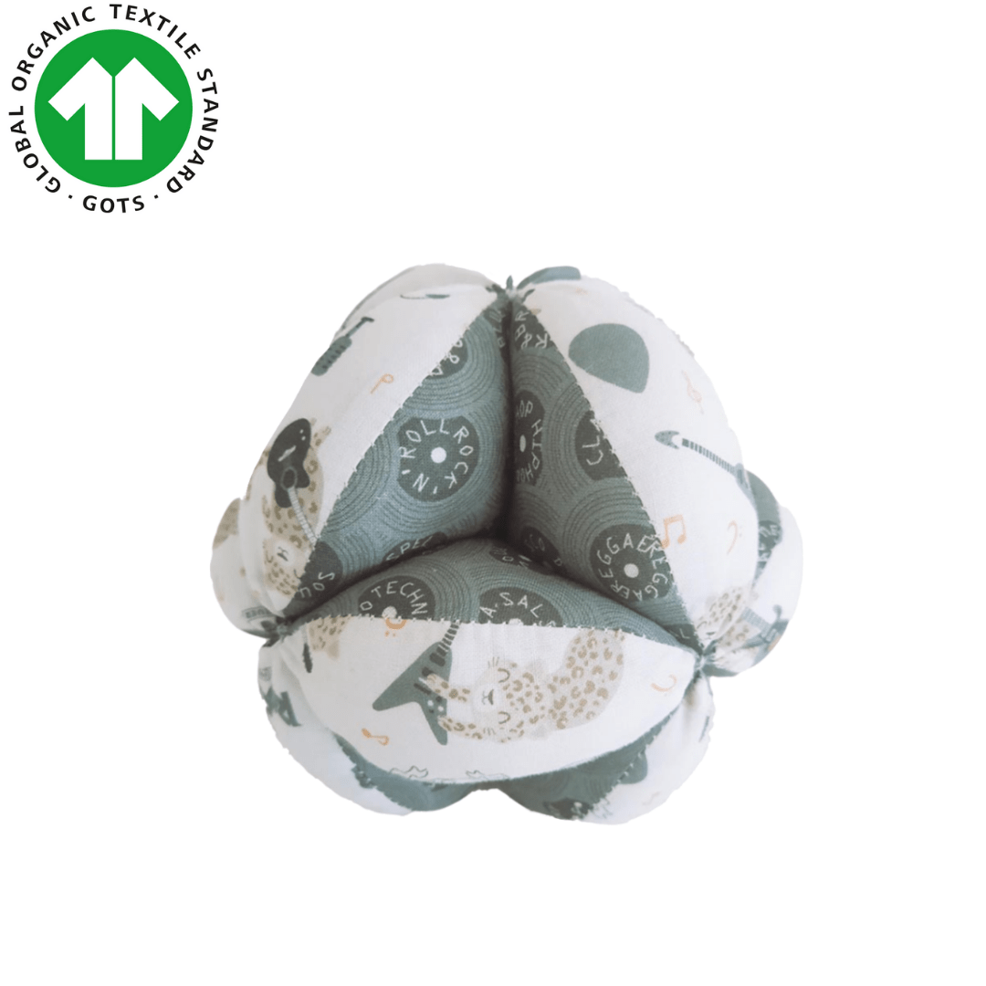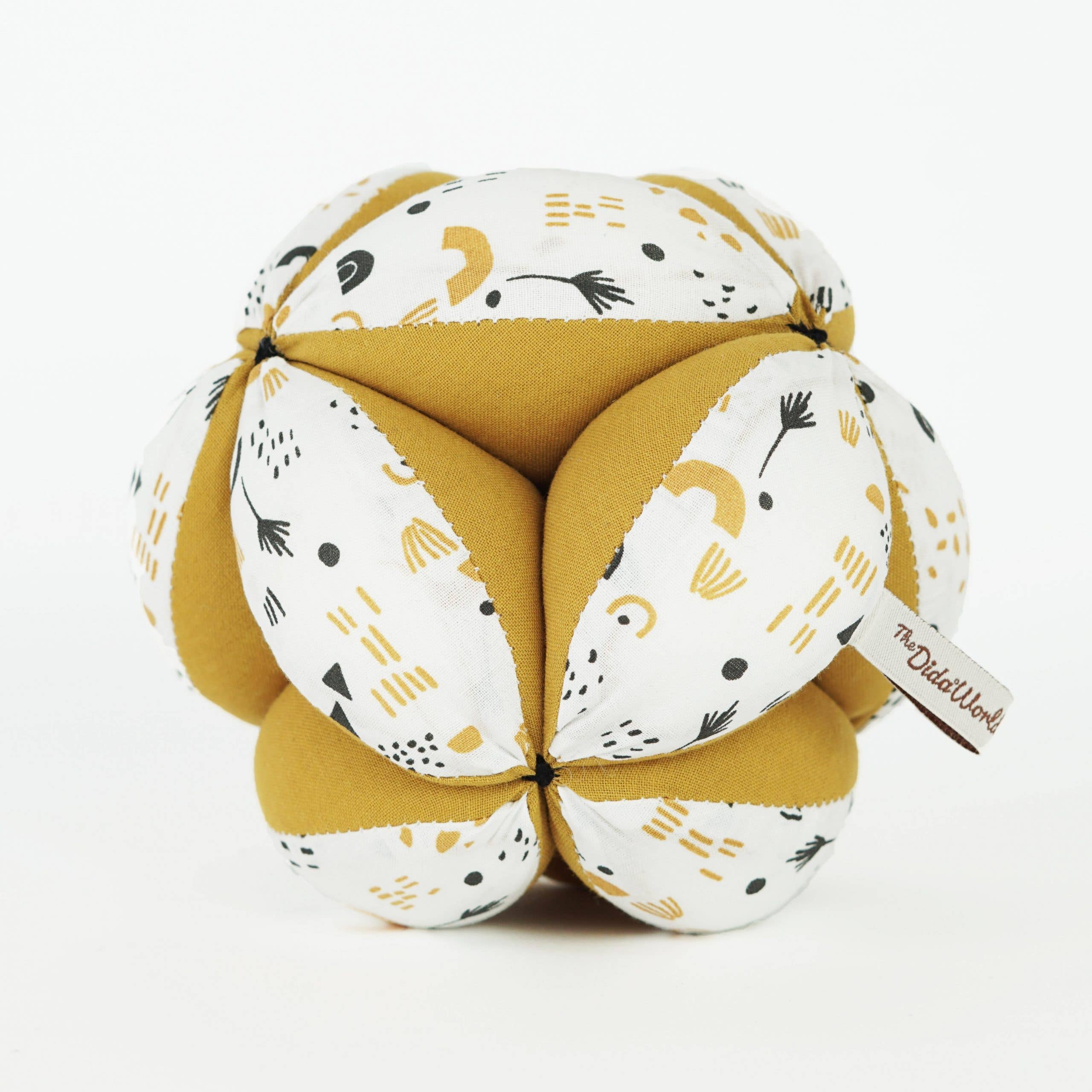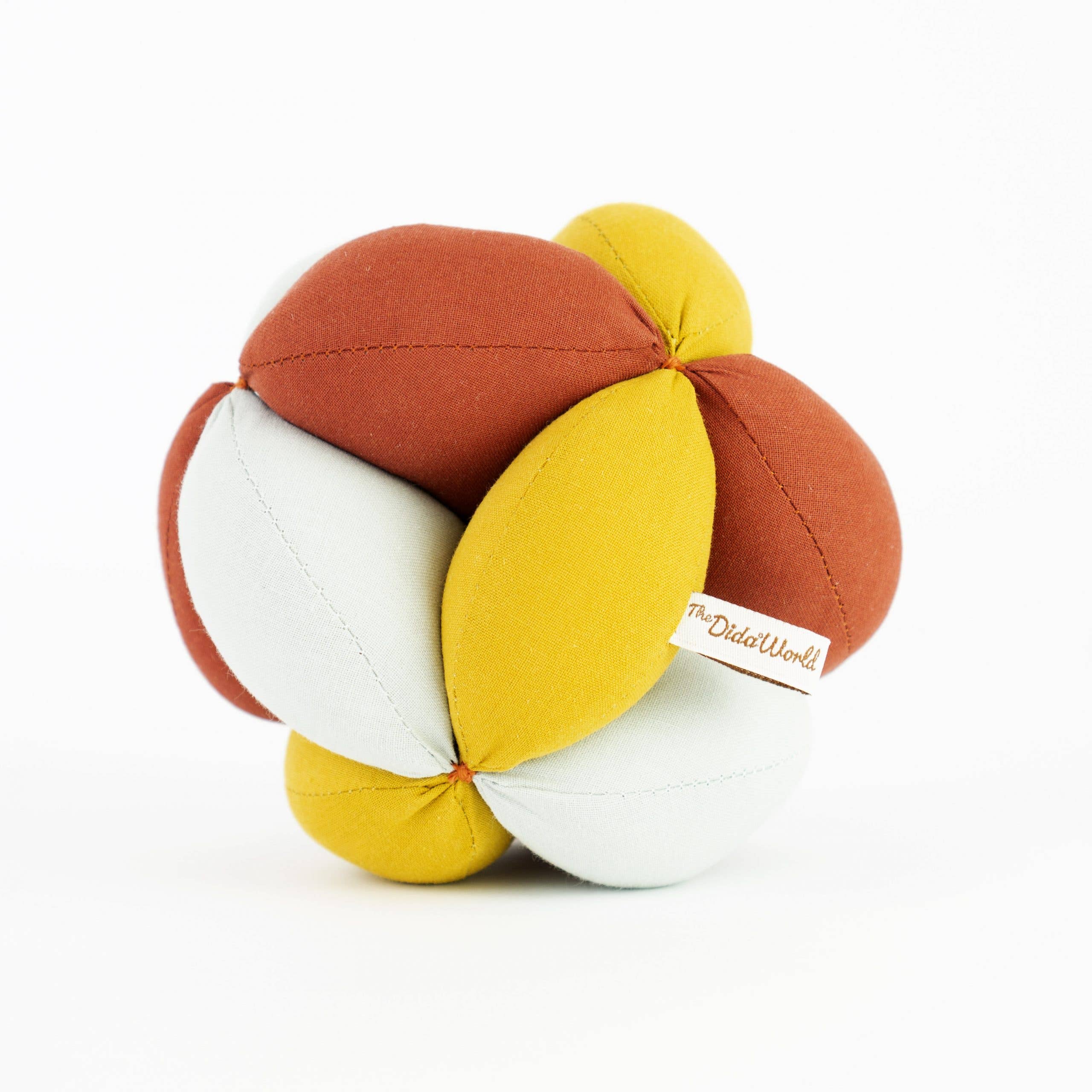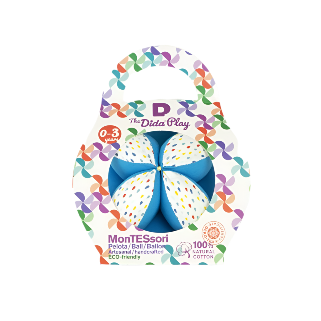 La Pelota Montessori de The Dida está confeccionada a mano con algodón 100% orgánico, ideal para bebés desde los 3 meses. Su diseño segmentado facilita el agarre, estimulando la coordinación, el movimiento y el juego autónomo. Perfecta para fomentar el desarrollo sensorial y motor en un entorno respetuoso. Lavable y libre de tóxicos.